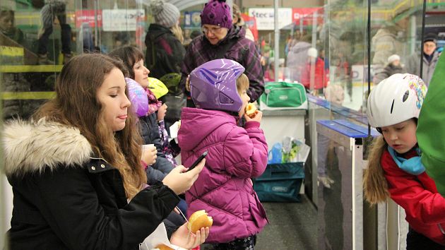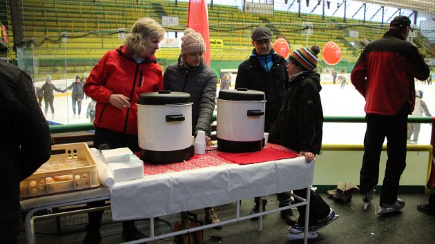 Příchozí si mohli užít dvouhodinové bruslení zdarma, během kterého se podávalo svařené